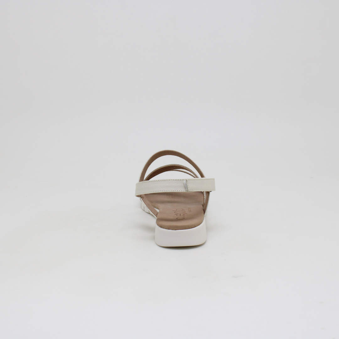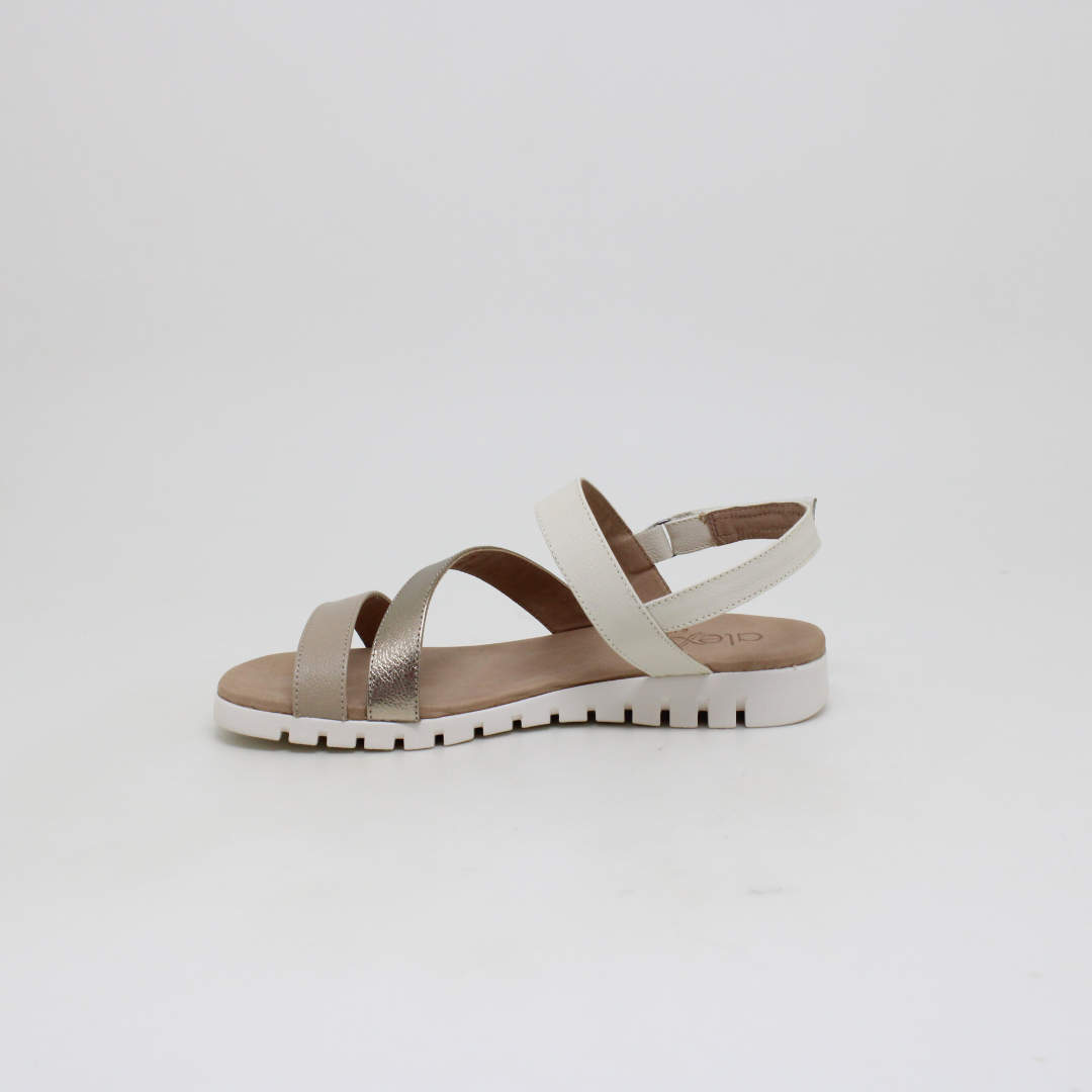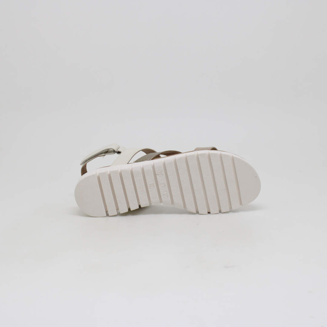 Sandália Opananken na cor amêndoa/prata velho, salto anabela baixo, confeccionado em couro legítimo muito macio. Forração interna toda em couro também. Calçado muito confortável.
