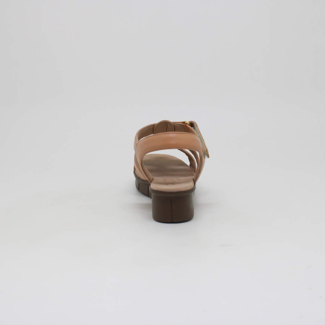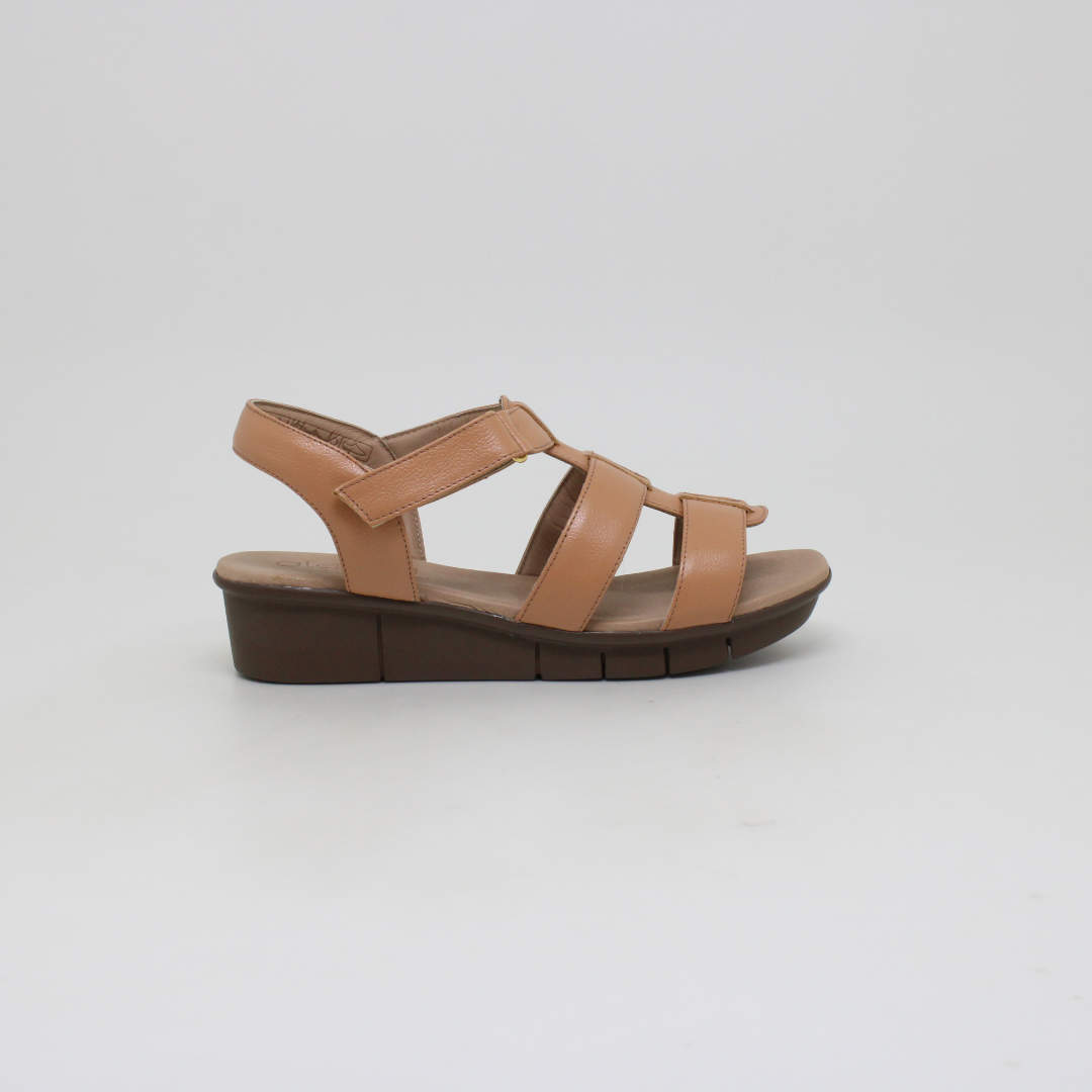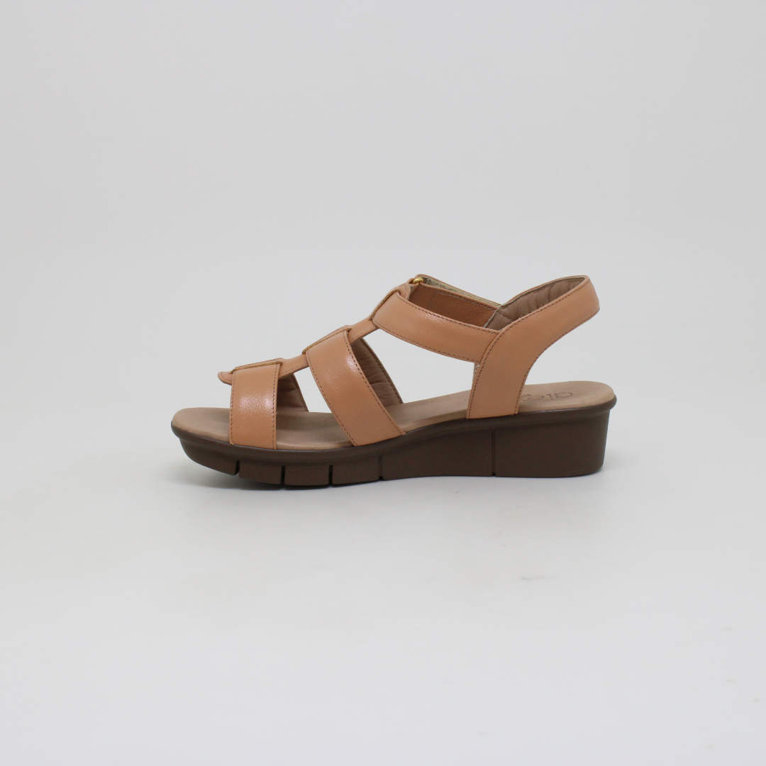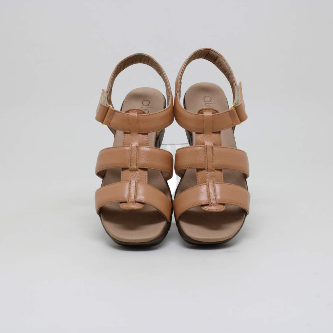 Sandália Opananken na cor amarula , salto anabela médio, confeccionado em couro legítimo muito macio. Forração interna toda em couro também. Calçado muito confortável.