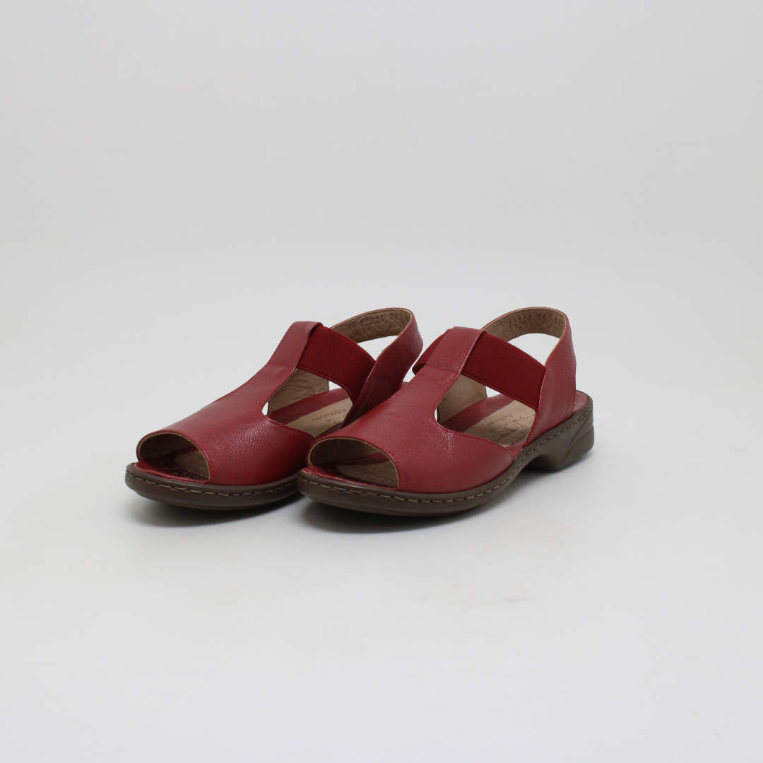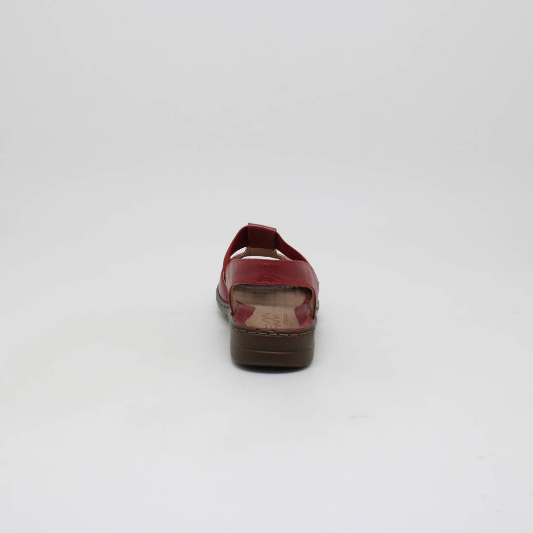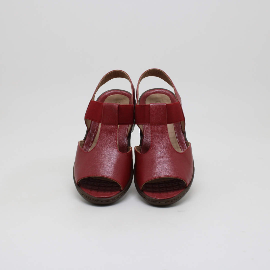 Sandália Opananken na cor red/red, salto anabela baixo, confeccionado em couro legítimo muito macio. Forração interna toda em couro também. Calçado muito confortável.