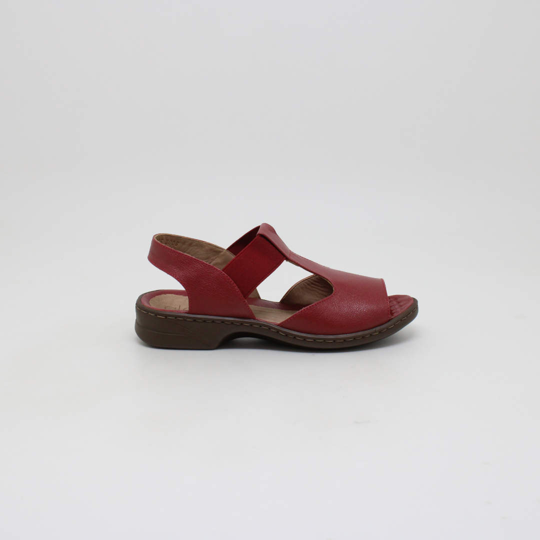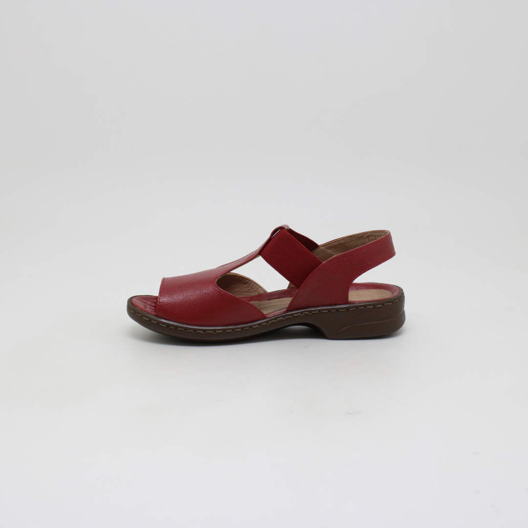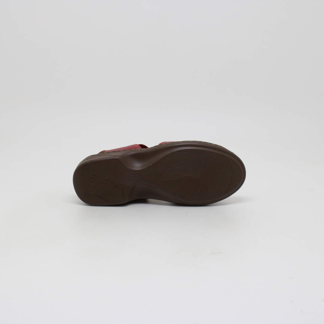 Sandália Opananken na cor red/red, salto anabela baixo, confeccionado em couro legítimo muito macio. Forração interna toda em couro também. Calçado muito confortável.
