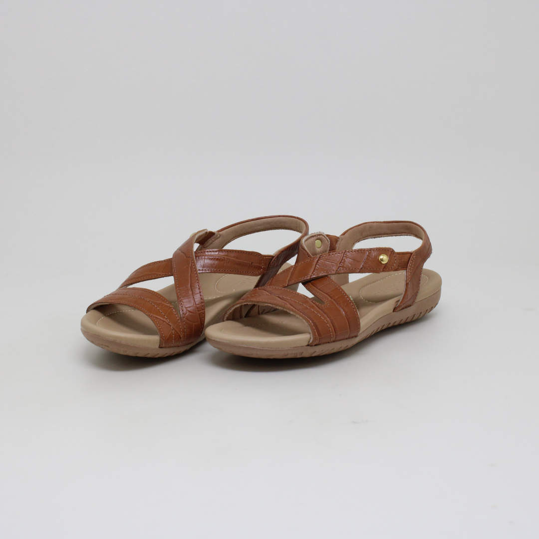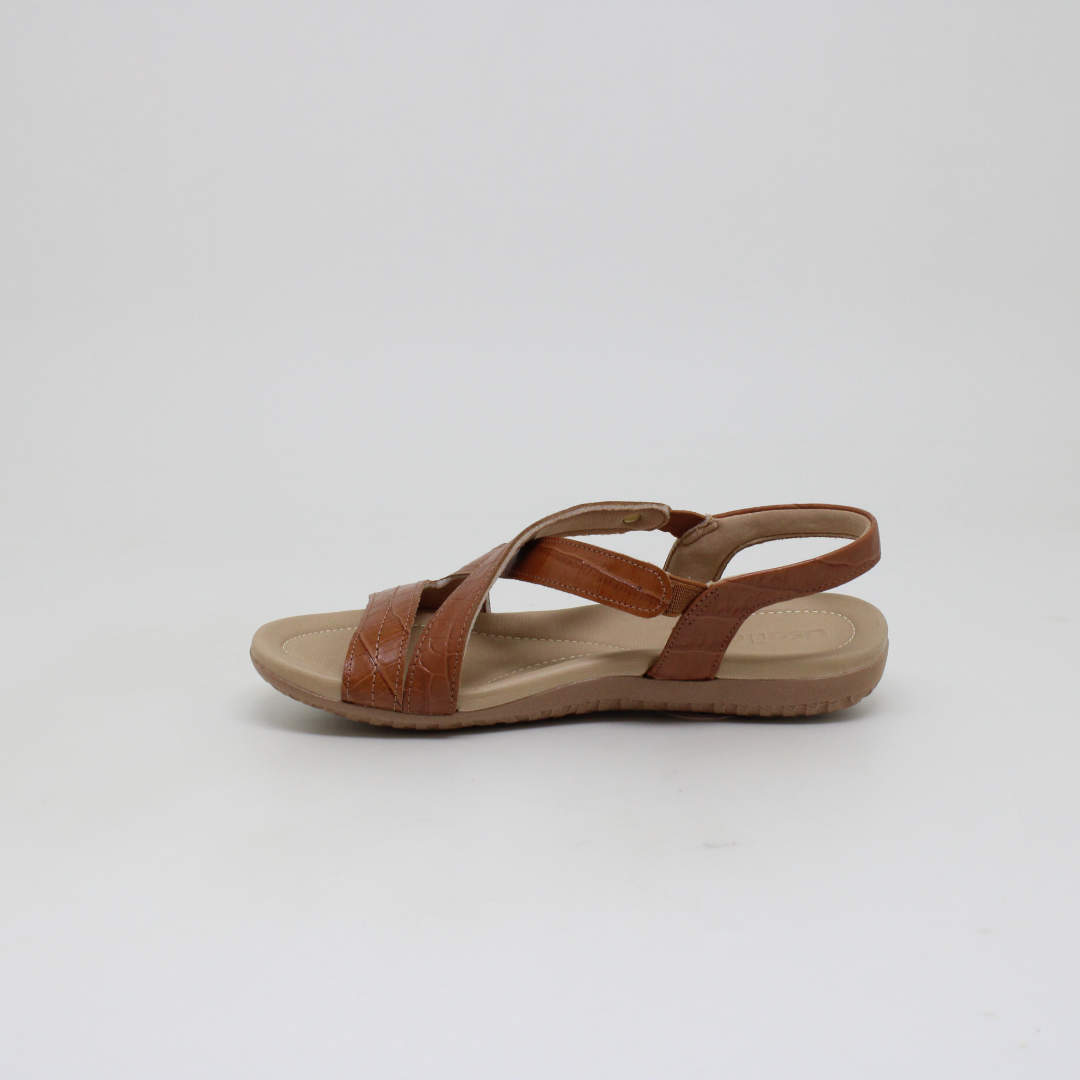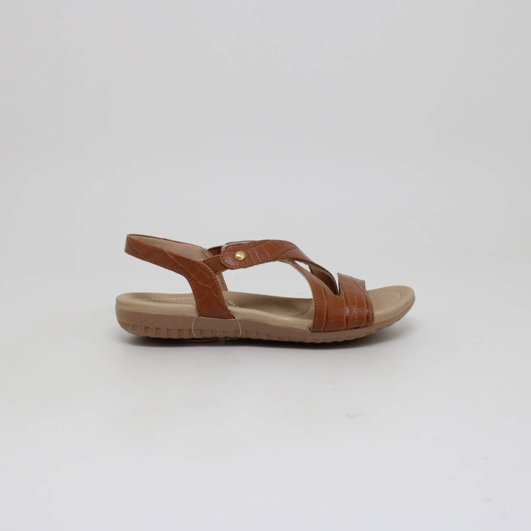 A sandália em couro na cor doce de leite em  textura combina com qualquer look, e acompanha você dia e noite. Possui sola Comfy, que ameniza o impacto sofrido pelas irregularidades do solo, mas se mantém flexível devido ao seu material.
