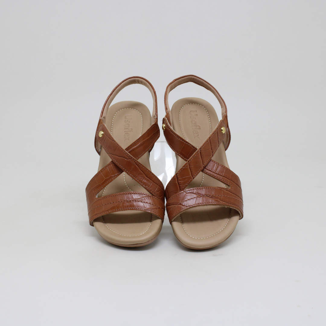 Usaflex Sandália Couro Doce de Leite Textura (R1804)