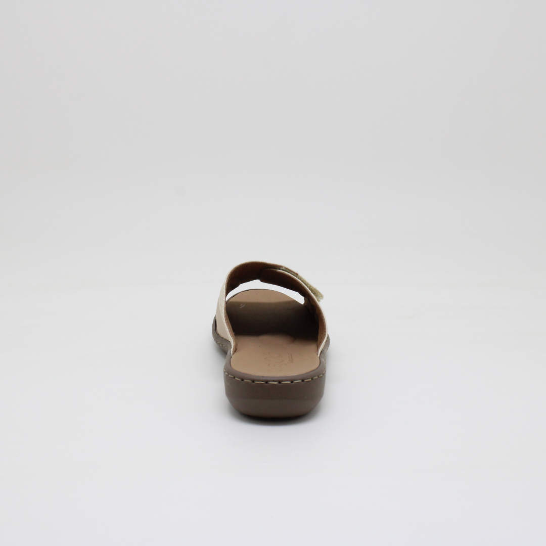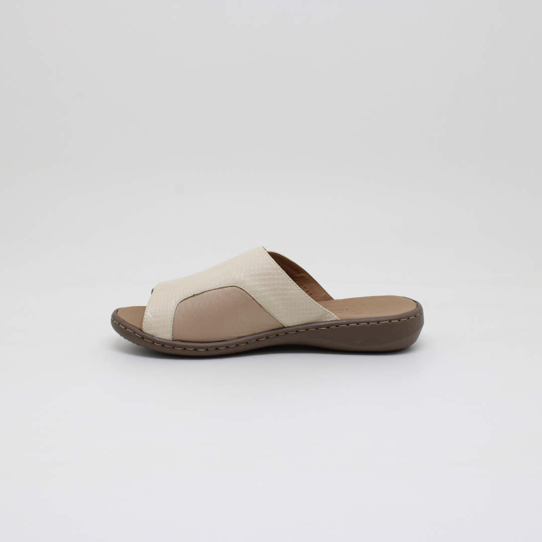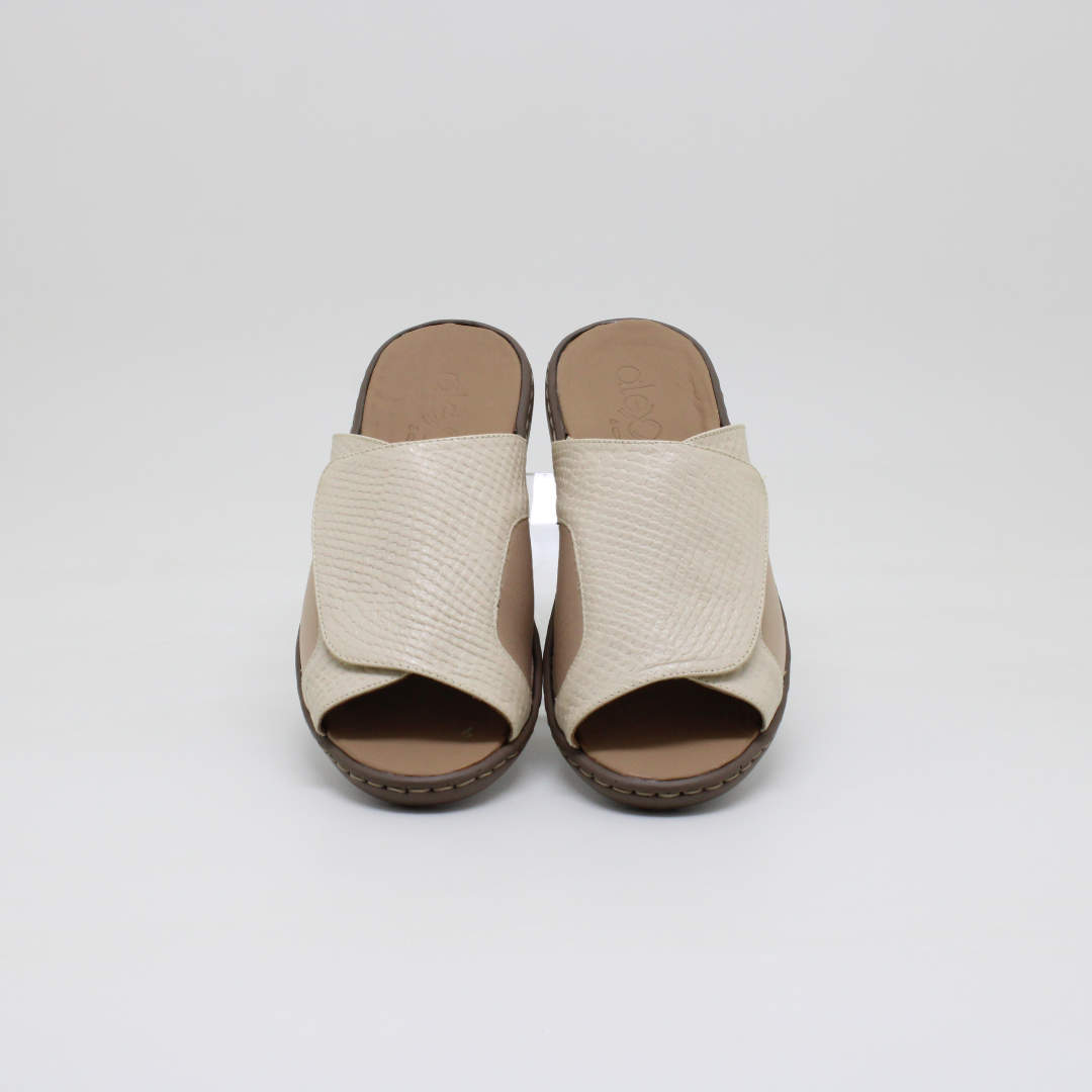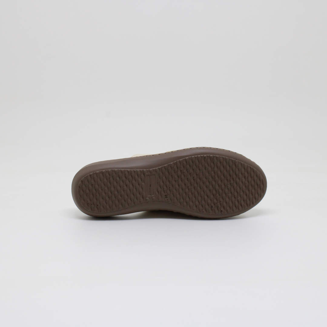 Tamanco/Chinelo Opananken na cor off white, salto anabela baixo , confeccionado em couro legítimo, muito macio. Forração interna toda em couro também. Calçado muito confortável.